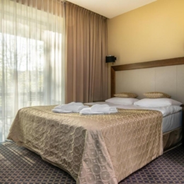Dviviečiame viešbučio „Druskininkai“ kambaryje daugiausiai gali apsistoti 3 asmenys (1 dvigulė arba 2 viengulės lovos ir 1 pristatoma viengulė lova arba vaikiškas maniežas).