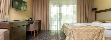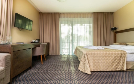 Liukse viešbutyje „Druskininkai“ daugiausiai gali apsistoti 3-4 asmenys (1 dvigulė lova ir 1 išskleidžiama dvigulė sofa-lova) ir 1 kūdikis vaikiškame manieže.