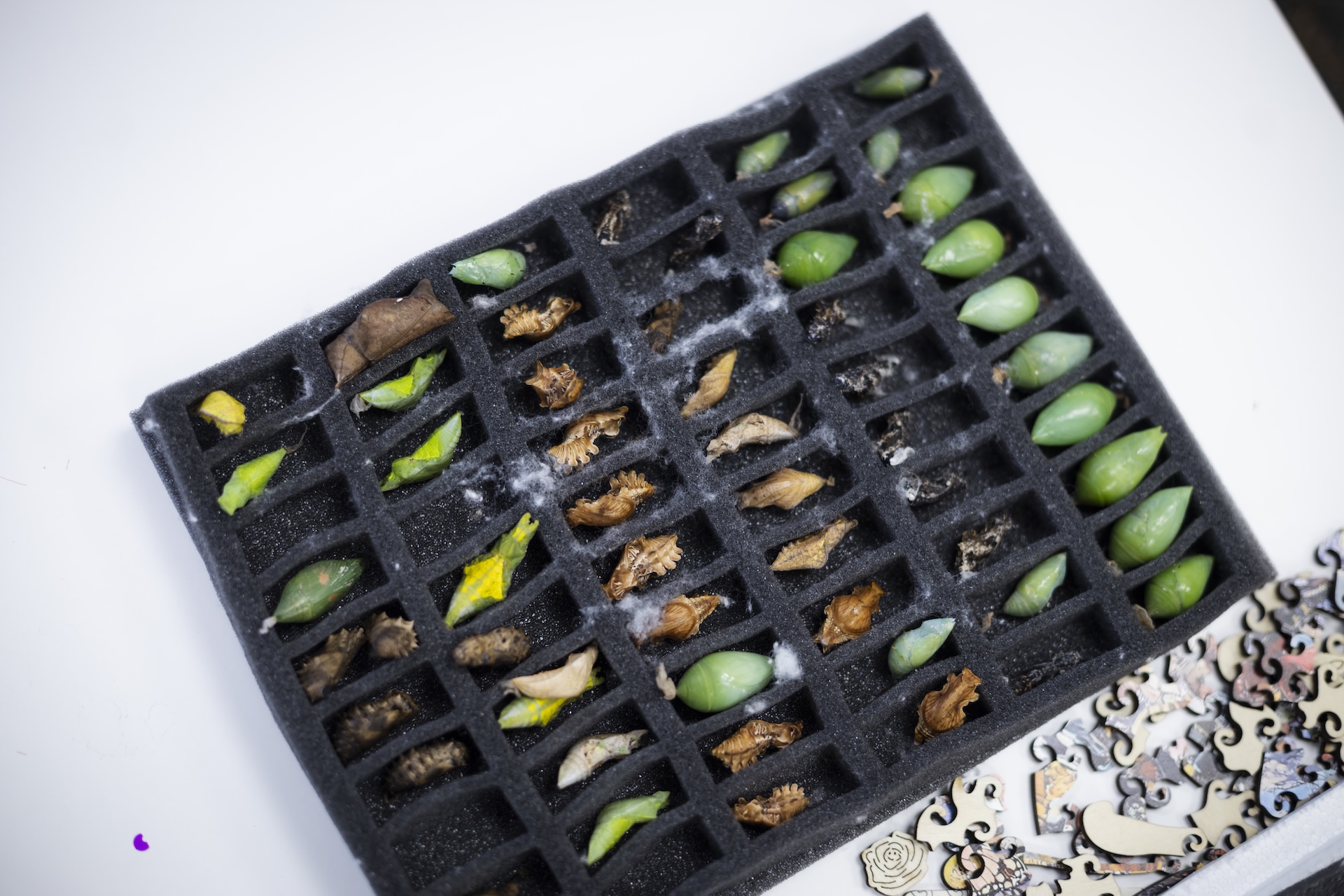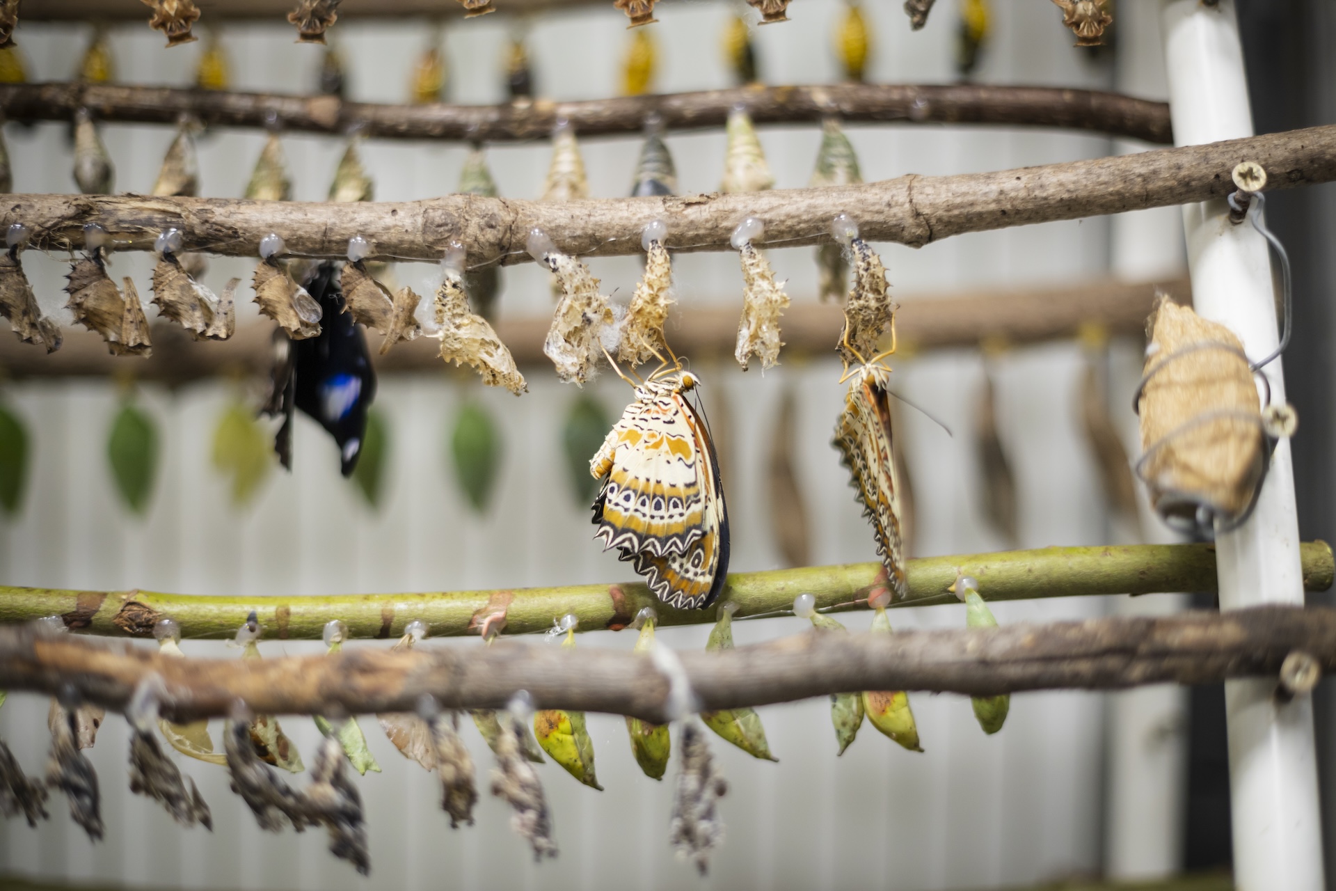 Drugeliai aktyviausi saulėtomis dienomis ir ryte. Naujos lėliukės parodą pasiekia kiekvieną trečiadienį, tad savaitgaliais išsirita daugiausia naujų gyventojų.
